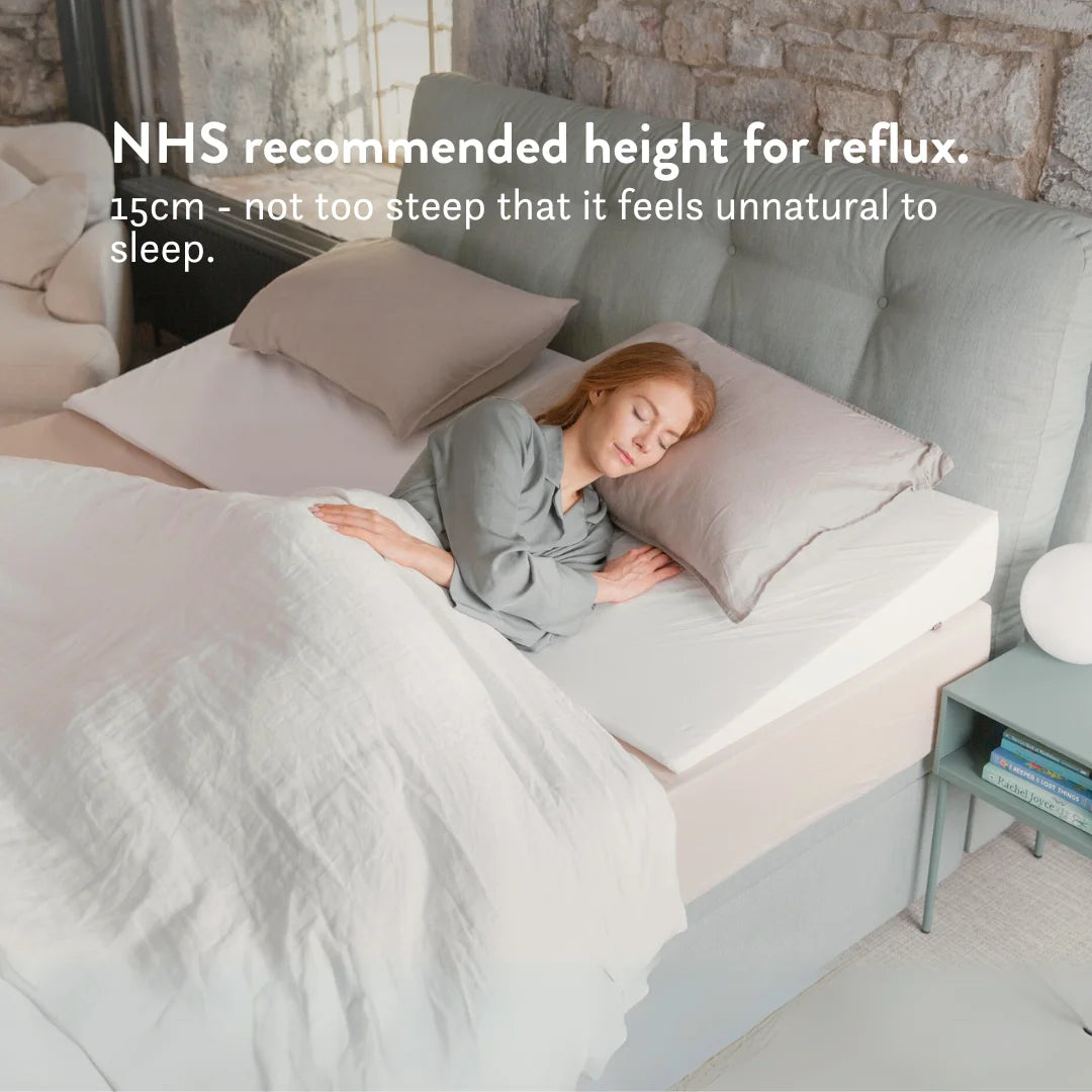 Our bed wedge (15cm) is at the NHS recommended height for acid reflux (between 10 - 20cm).